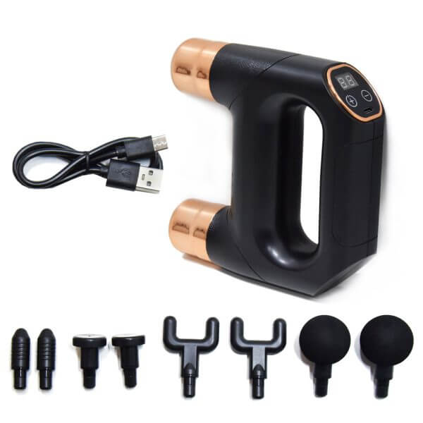 Dupla fejes masszázspisztoly – 6 intenzitási fokozattal, 4 cserélhető fejjel