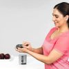 A rekeszek akkorák, mint egy darab keksz, az adagoló pedig alig vetekszik egy bögre magasságával. Ennek fényében akár a napi adagot, akár az egész hétre valót, könnyedén magaddal viheted, a zsebedben vagy a táskádban.
