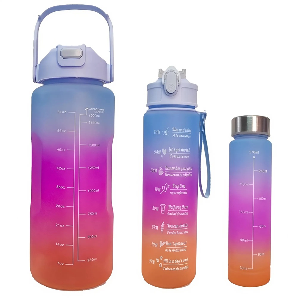 – 3 db motivációs kulacs 2l, 900ml, 300ml űrtartalommal