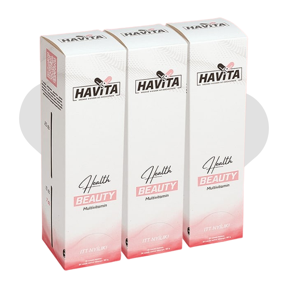 A csomag tartalma 3 doboz Havita Health Beauty, egy teljes vitaminkúra kedvezményesen!