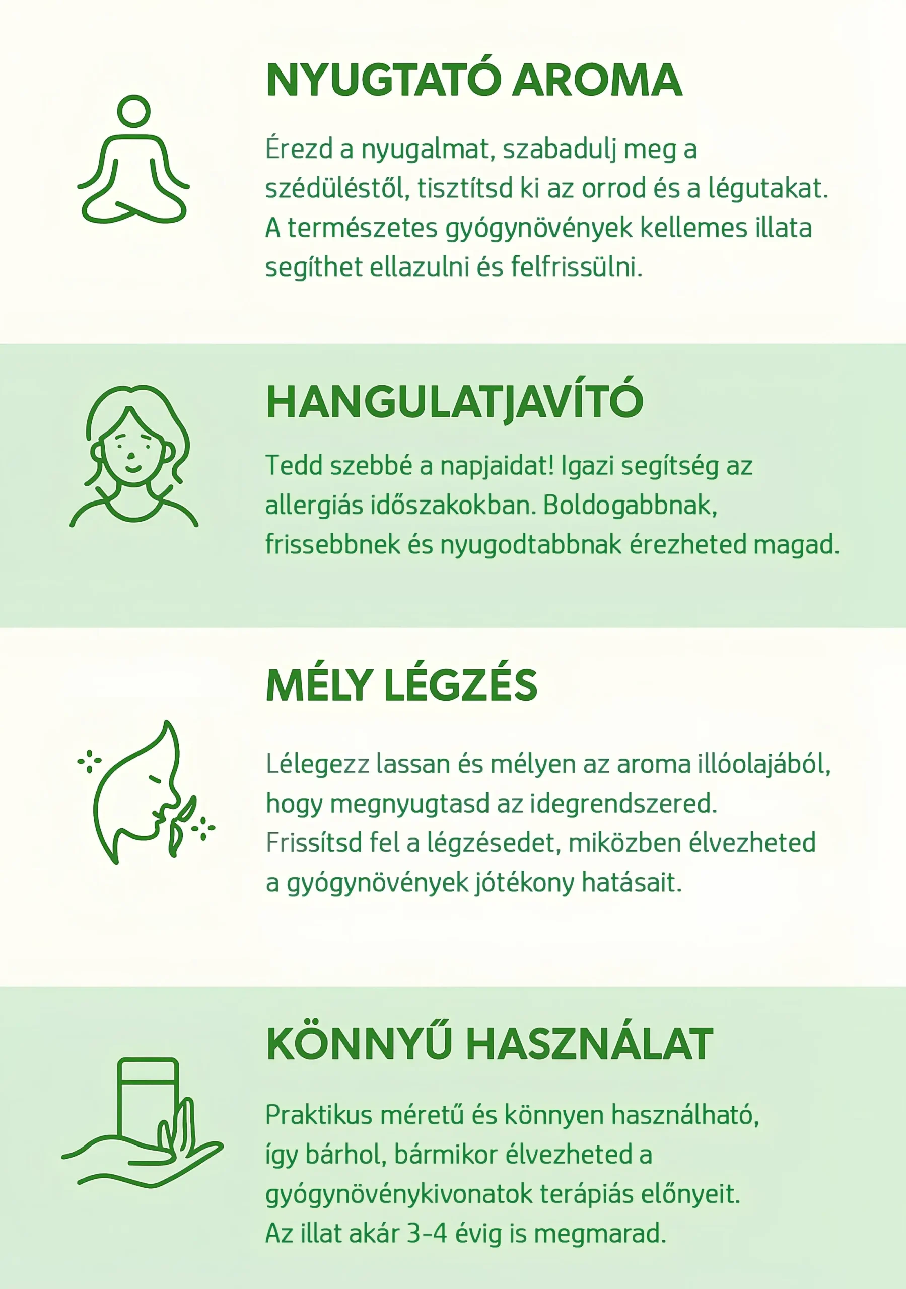 A hosszú évszázadok óta használt, ősi gyógynövények ereje most egy apró inhalátorban egyesül. Ez a kis eszköz a keleti hagyományokat ötvözi a modern kényelemmel, hogy gyors és természetes segítséget nyújtson a mindennapos kellemetlenségek és diszkomfort enyhítése érdekében.