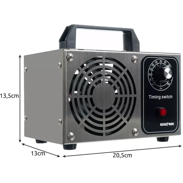 Nem hiába szerepel a nevében, hogy hordozható, ugyanis alig több, mint 20 cm hosszú és mindössze 13 cm széles. Súlya sem éri el az 1,5 kg-ot. Hatékonysága 20.000 mg/h, amely elegendő egy családi ház helyiségeinek, vagy az autó belterének teljes fertőtlenítésére. Ahogy fentebb írtuk a fél óra használat optimális lehet, de az időzítőt 1 és 60 perc között tudod szabályozni.