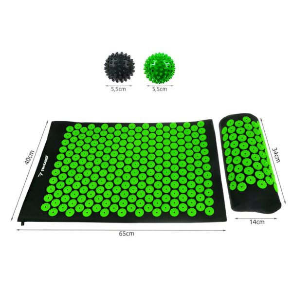 Regeneráló akupresszúrás matrac, nyakpárna és tüskés labda praktikus tárolózsákban