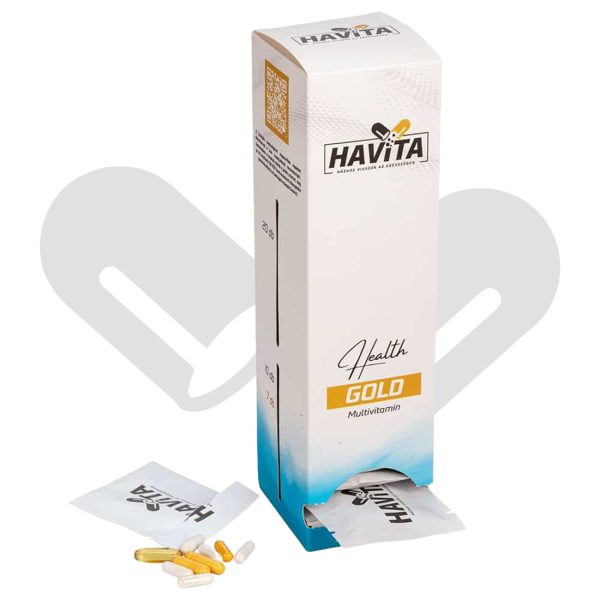 A Havita Health Gold egy elsősorban aktív felnőttek, sportolók és nehéz fizikai munkát végzők részére kifejlesztett multivitamin csomag. A sporttevékenység által kifejtett stressz hatására a szervezetedben káros gyökök szabadulnak fel, amelyek ellen extra antioxidánsokkal veheted fel a harcot, támogatva a gyorsabb izom regenerációt. A megfelelő vitaminok pótlásával a regeneráció is gyorsítható. A csomag magas dózisban tartalmazza a számodra szükséges vitaminokat és ásványi anyagokat, hogy a sport során elvesztett mennyiségeket pótolni tudd. Ezen felül Omega 3 zsírsavval is kiegészítettük, hogy ízületeidet és idegrendszered is támogatni tudjuk.