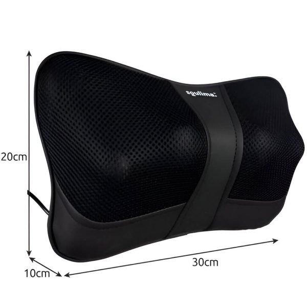 A masszázspárna fekete színű, amely 2 beépített masszázsfejjel, fejenként 2-2 masszázsgolyóval rendelkezik. Anyaga kiváló minőségű öko-bőr, valamint légáteresztő háló. Kétféle üzemmódban és fűtőfunkcióval használható. Teljesítménye 24 W, mérete 30x20x10 cm. Súlya 1,187 kg.
