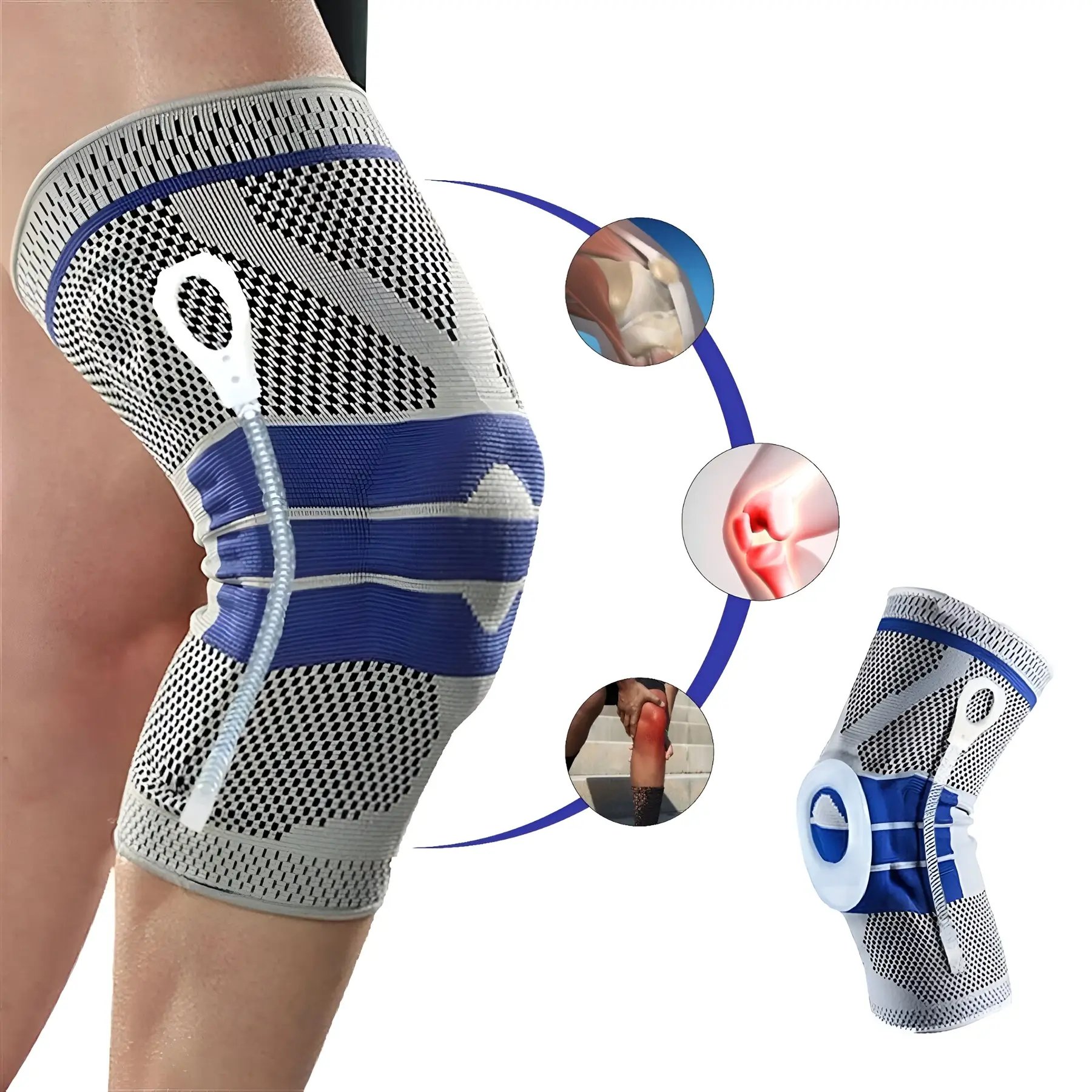 A beépített szilikongyűrű masszírozó hatást fejt ki a térded körül, miközben hatékony védelmet is nyújt az ütésekkel és dörzsölésekkel szemben. Az oldalsó rugalmas spirálok további stabilitást biztosítanak a térdednek, segítve a helyes pozíció megtartását és csökkentve a sérülések kockázatát.