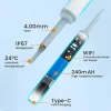 Az előbb említett erős akku mellett a könnyed hordozhatósághoz hozzájárul még a mindössze 14 cm-es magasság, 1,4 cm átmérő és a 21 grammos súly. Színe általában fehér, de mindig az aktuális raktárkészlet szerint szállítjuk. Ahogy fentebb írtuk a kamera 5 MP felbontású, a lencse pedig 4 mm átmérőjű. A csomagban megtalálható maga az eszköz, 4 db szilikon fej, USB kábel és a használati útmutató.