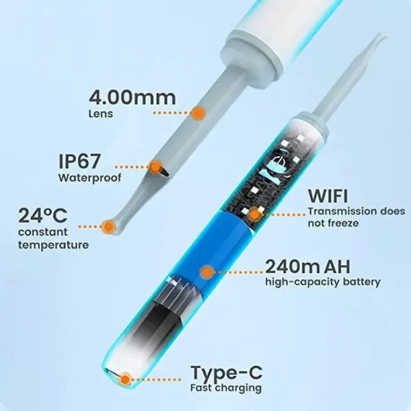 Legyen a füled ismét tiszta és szennyeződésmentes, használd hozzá az endoszkópos fültisztító készüléket! A beépített kamera segítségével pontosan meghatározhatod a lerakódások helyét, az eszköz fejével pedig könnyedén eltávolíthatod azokat.